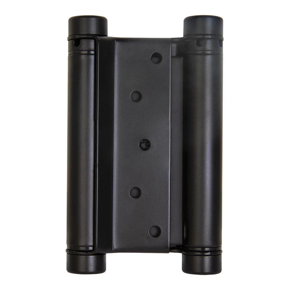 Петля двусторонняя (она же барная, пружинная, петля метро) применяется для деревянных дверей. Позволяет двери открываться в обе стороны, возвращает дверь в центральное положение (в створ). Втулки петель выполнены из техно-полимера, обеспечивают амортизацию, гарантируют тихую и плавную работу, увеличивают срок службы более 200 000 циклов. Специальный тормоз замедляет движение двери и уменьшает количество колебаний, это дает возможность использовать двери большего веса и размера. В комплекте с петлями идут полимерные пластины, облегчающие установку и гарантирующие надежное крепление.